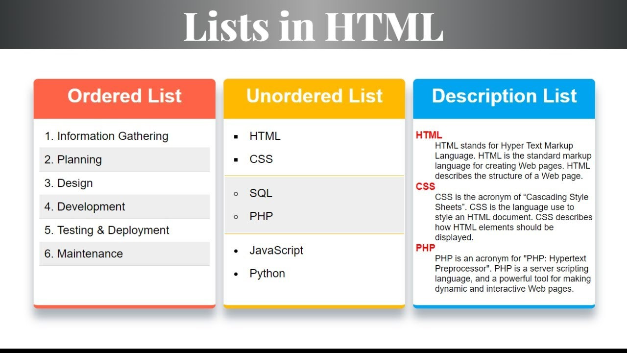 HTML, web sayfalarındaki bilgileri düzenli ve anlaşılır bir şekilde sunmak için listeleme özellikleri sunar. Ordered List (OL) ve Unordered List (UL), HTML’de kullanılan iki ana liste türüdür. Bu yazıda, bu liste türlerinin nasıl kullanılacağı, farkları ve iç içe geçmiş listelerle nasıl çalışılacağı ele alınacaktır.