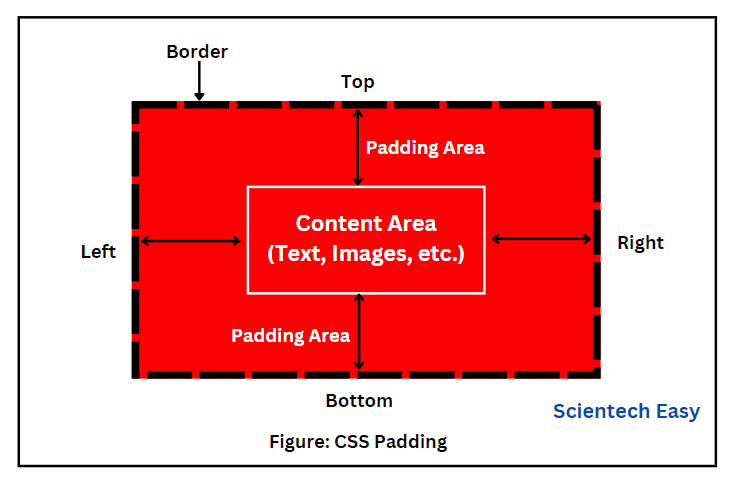 padding: 10px 20px 30px 40px; | İlk değer (10px) üst, ikinci (20px) sağ, üçüncü (30px) alt, dördüncü (40px) sol içindir. (Saat yönüyle ilerler) |