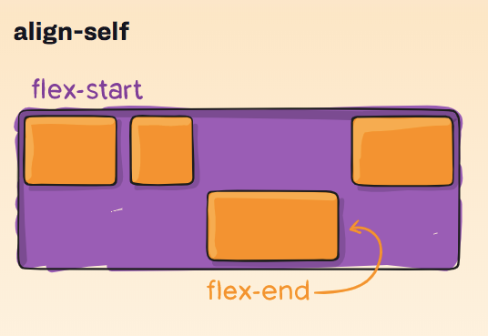 - align-self: flex-end; sayesinde üçüncü öğe çapraz eksenin en altına hizalanacak.